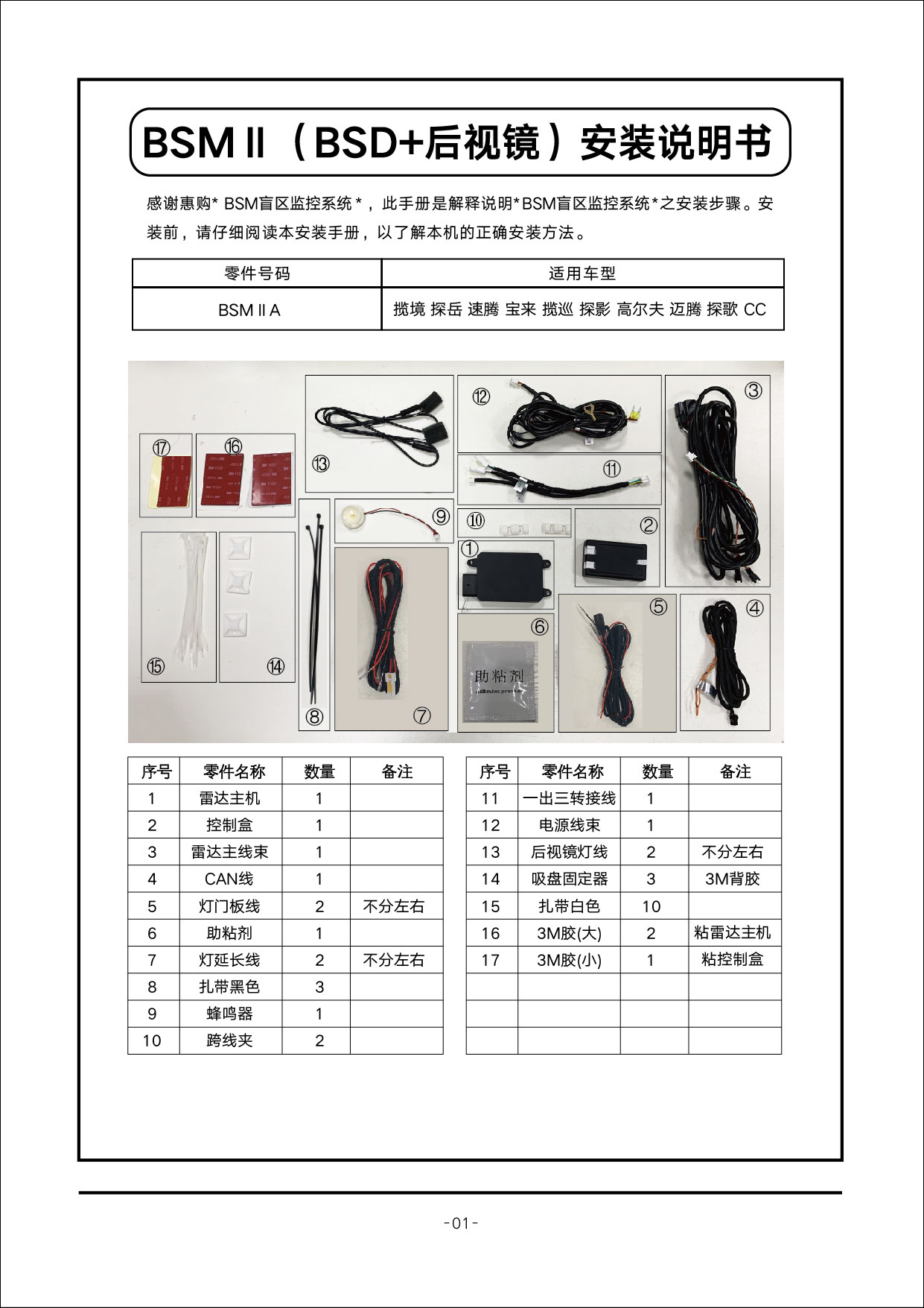 BSD+后视镜(控制盒+BSD+后视镜)大众系列